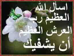 دعاء المريض مستجاب أسأل الله العظيم ربّ العرش العظيم أن يشفيك، أسأل الله العظيم ربّ العرش العظيم أن يشفيك، أسأل الله العظيم ربّ العرش العظيم أن يشفيك، أسأل الله العظيم ربّ العرش العظيم أن يشفيك، أسأل الله العظيم ربّ العرش العظيم أن يشفيك، أسأل الله العظيم ربّ العرش العظيم أن يشفيك، أسأل الله العظيم ربّ العرش العظيم أن يشفيك. قال النبي صلّى الله عليه وسلم لأسماء بنت أبي بكر الصدّيق: "ضعي يدك اليمنى على ما يؤذيكِ، وقولي بسم الله اللهم داوني بدوائك، واشفني بشفائك، وأغنني بفضلك عمّن سواك واحدر عني أذاك" قال عثمان بن عفان رضي الله عنه: مرضت فكان رسول الله صلى الله عليه وسلّم يعوذني، فقال:"بسم الله الرحمن الرحيم أعيذك بالله الأحد الصمد الذي لم يلد ولم يولد، ولم يكن له كفوًا أحد من شر ما تجد" ثمّ قال "تعوذ بها فما تعوذت بمثلها" . https://ima.dzgsm.com/uploads/167348547178141.jpg |