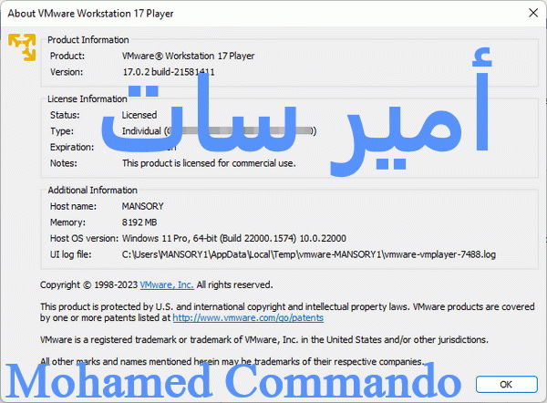 رد: برنامج تشغيل أكثر من نظام ويندوز أو لانيكس تحديث أبريل 2023 مفعل بالسيريال الاصلي VMware Workstation Player 17.0.2 Build 21581411 Commercial