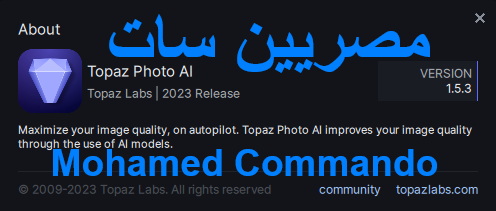 رد: برنامج الايديت تحسين جودة الصور بذكاء الاصطناعي تحديث أغسطس 2023 مرفق ملف الريجستري مفعل مدي الحياة Topaz Photo AI 1.5.3